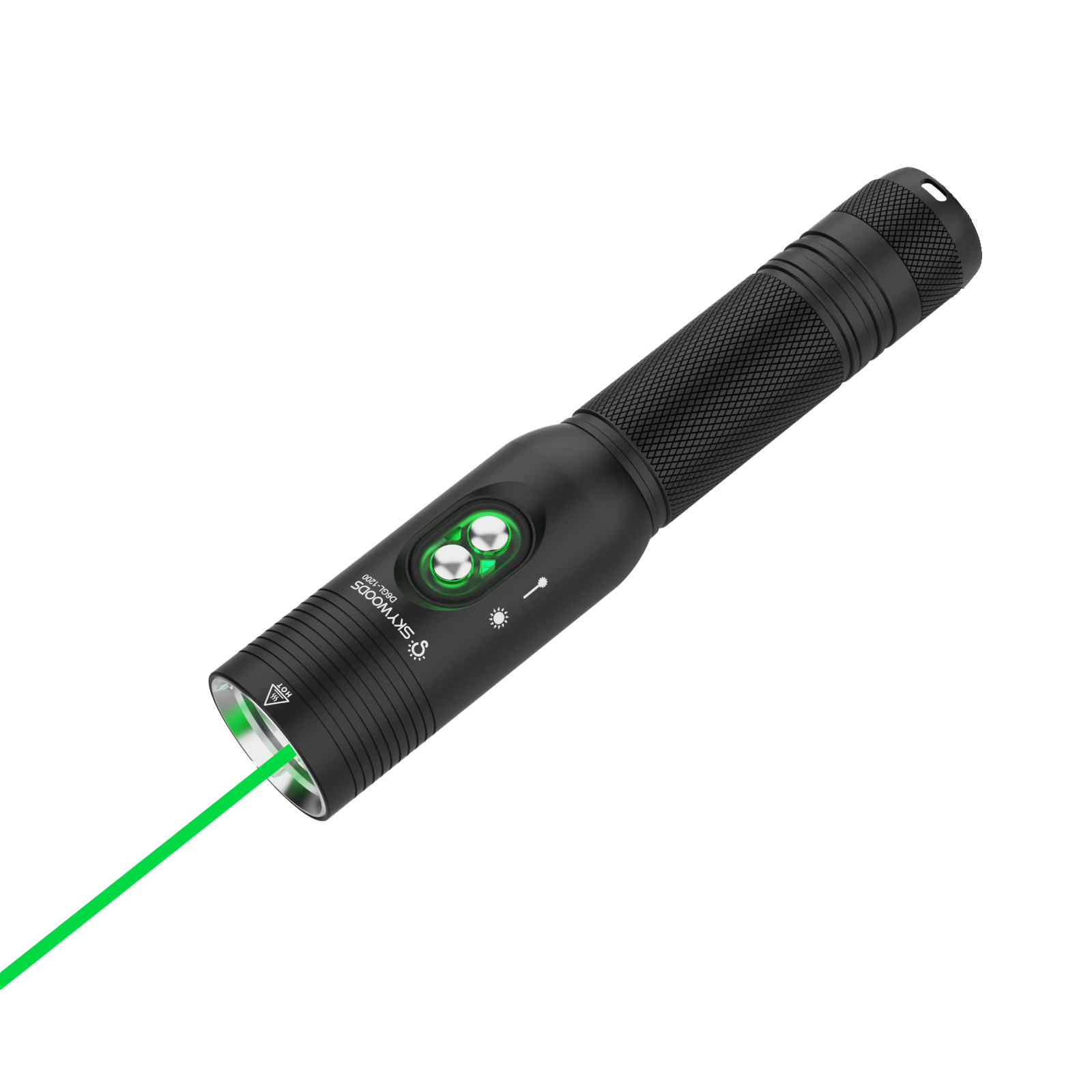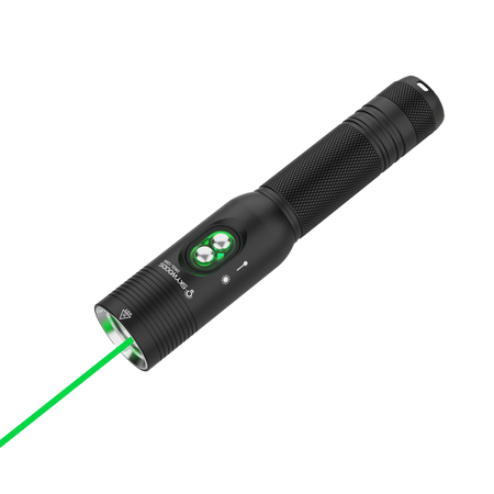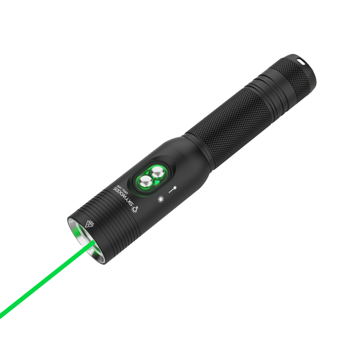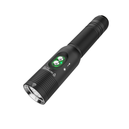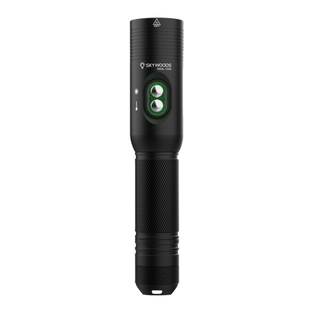 The Skywoods D6GL Pro combines a 1200-lumen dive light with a high-visibility green laser for unmatched underwater precision. Perfect for communication, signalling, marking, and pinpoint instruction, the 8° beam reaches 370m with 19,000 lux intensity. IPX8-rated to 100m, it runs up to 28 hours in laser mode or 2 hours at full white light on its rechargeable 18650 battery.