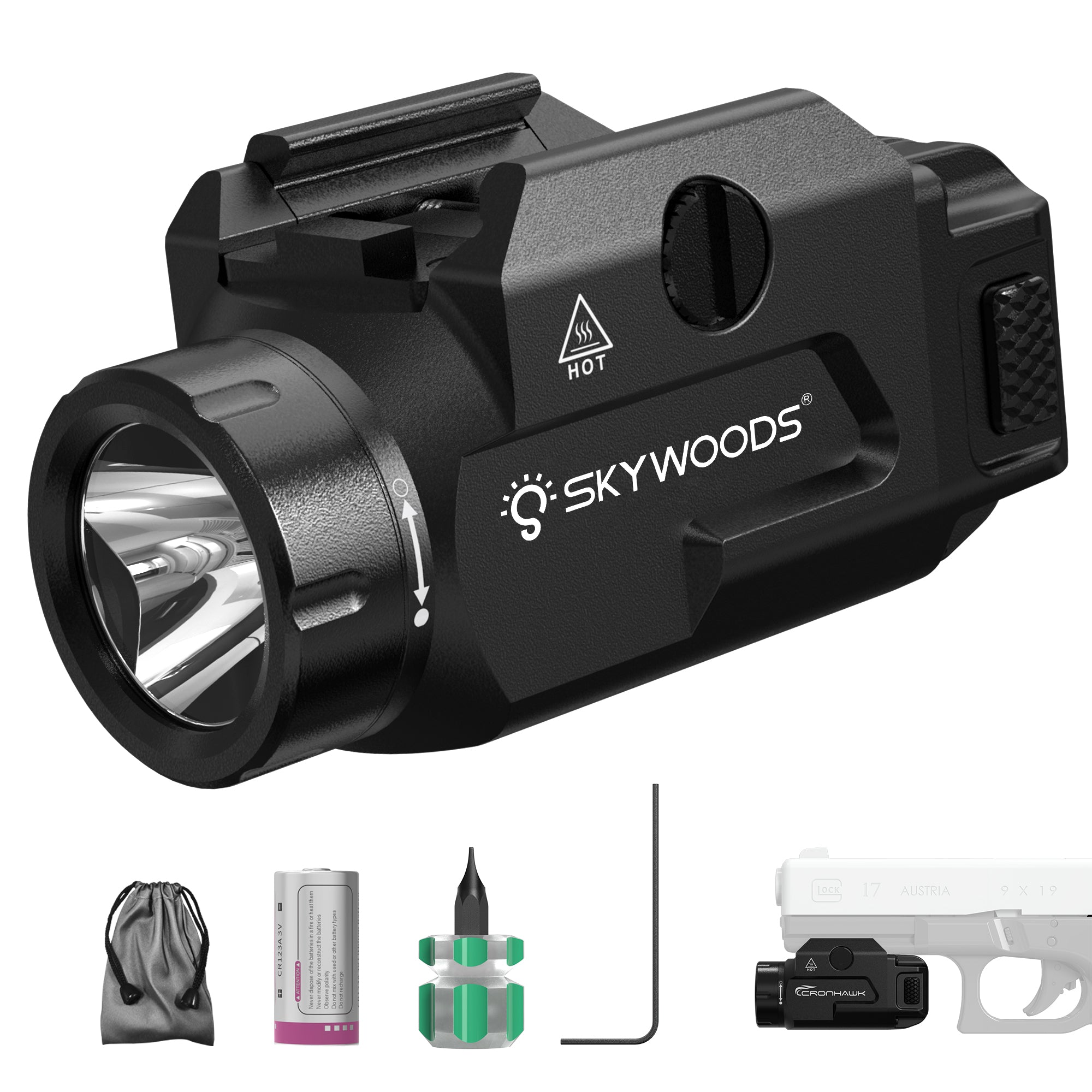 The Skywoods PL500 is a compact, rail-mounted pistol tactical light designed for professional, defence, and duty applications. Delivering up to 500 lumens of focused white light with a beam distance of 110 metres, the PL500 provides reliable target identification and situational awareness in low-light environments.